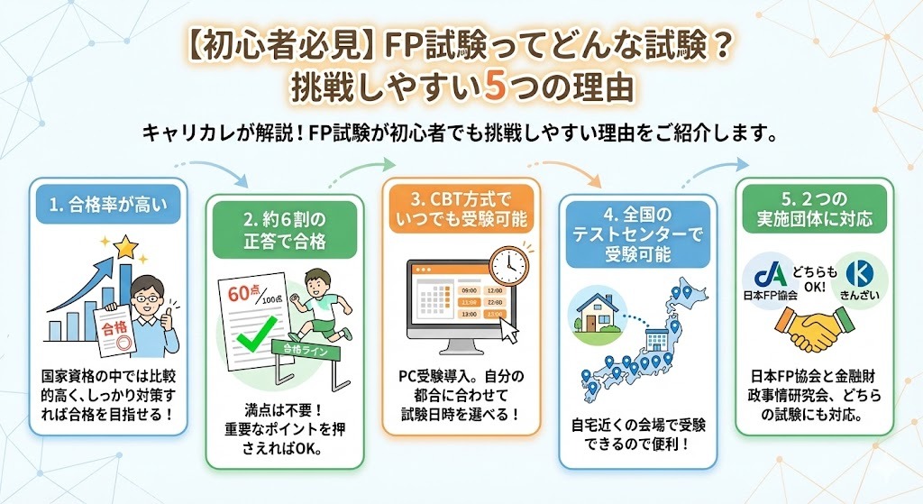 最後に、FP試験が初心者でも挑戦しやすい理由を簡単にご紹介します。